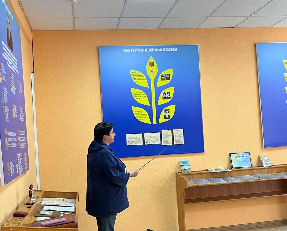 В музейной комнате В.И.Кремко учащиеся 21с группы познакомились с Проектом "Его хлебов держава". Куратор группы Овечкина Ольга Викторовна рассказала о выпускнике нашего колледжа - Герое Беларуси В.И.Кремко, о том как создавалась музейная комната, о наградах героя, как проходило его становление на пути к профессии, а также о трудовой деятельности Виталия Ильича. Учащиеся узнали о династии семьи Кремко, просмотрели видеофильм, который был предоставлен семьёй Кремко в музейную комнату.