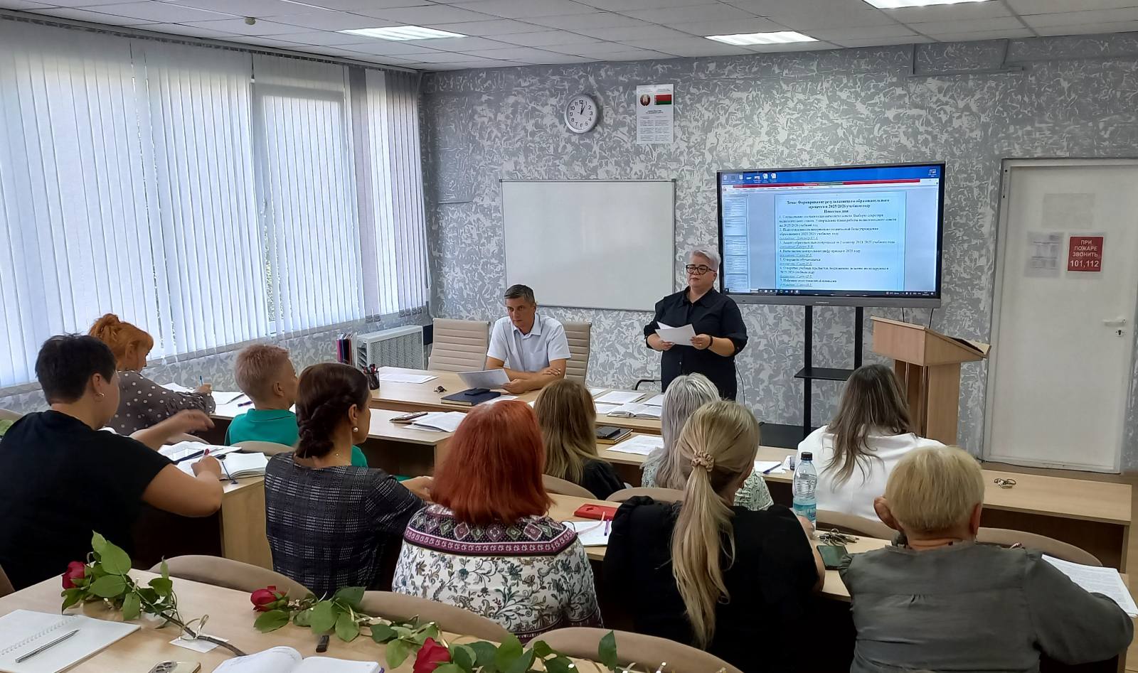 Педагогический совет на тему "Формирование результативного образовательного процесса в 2025/2026 учебном году" состоялся 29 августа. В ходе заседания согласован состав педагогического совета, избран секретарь педагогического совета, заслушан отчет о подготовке материально-технической базы учреждения образования к 2025/2026 учебному году, произведен анализ образовательного процесса за 2 семестр 2024/2025 учебного года и контрольных цифр приема в 2025 году, рассмотрены основные аспекты результативной организации образовательного процесса в 2025/2026 учебном году, приоритетные направления воспитательной работы на 2025/2026 учебный год и др.