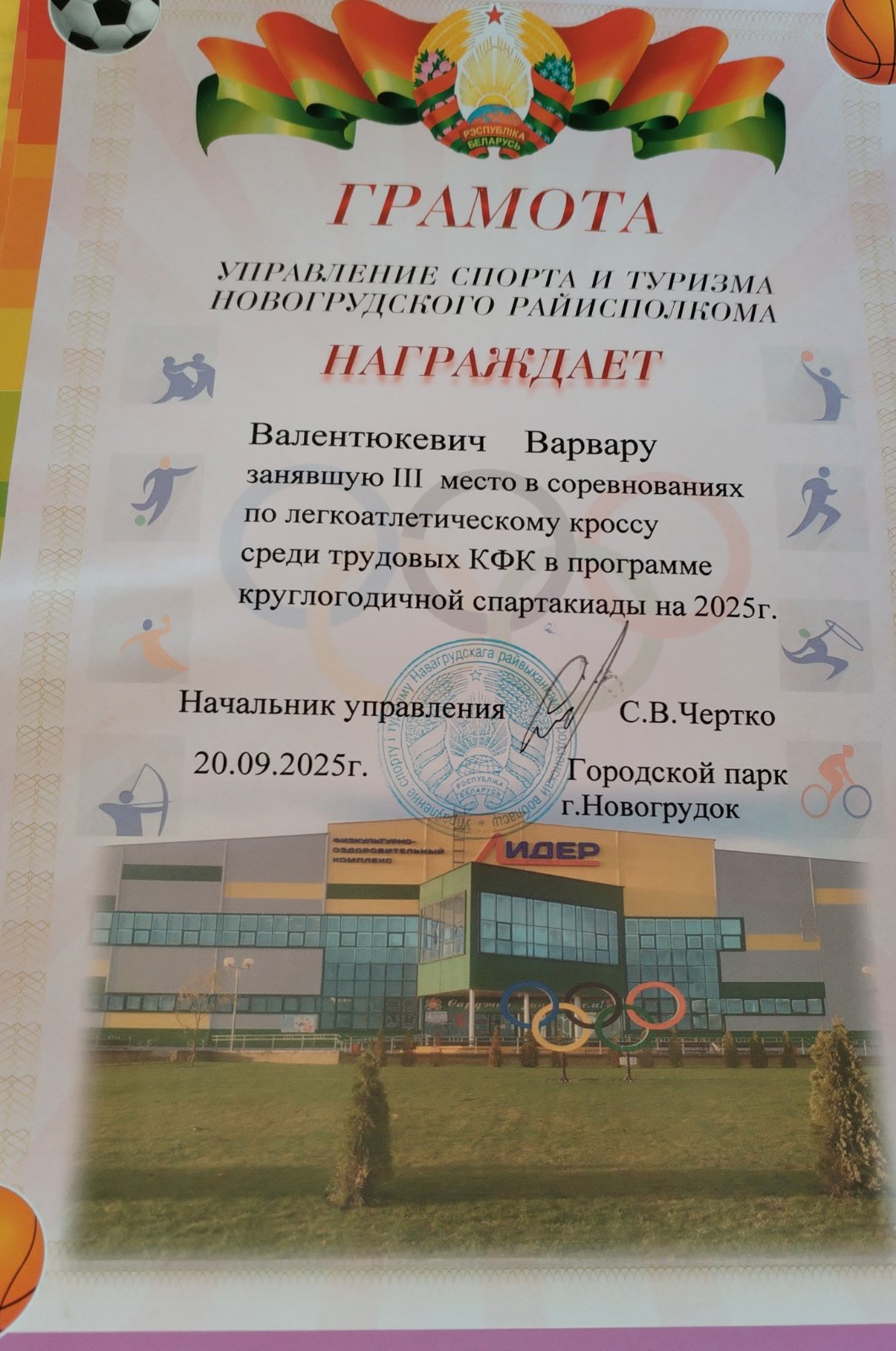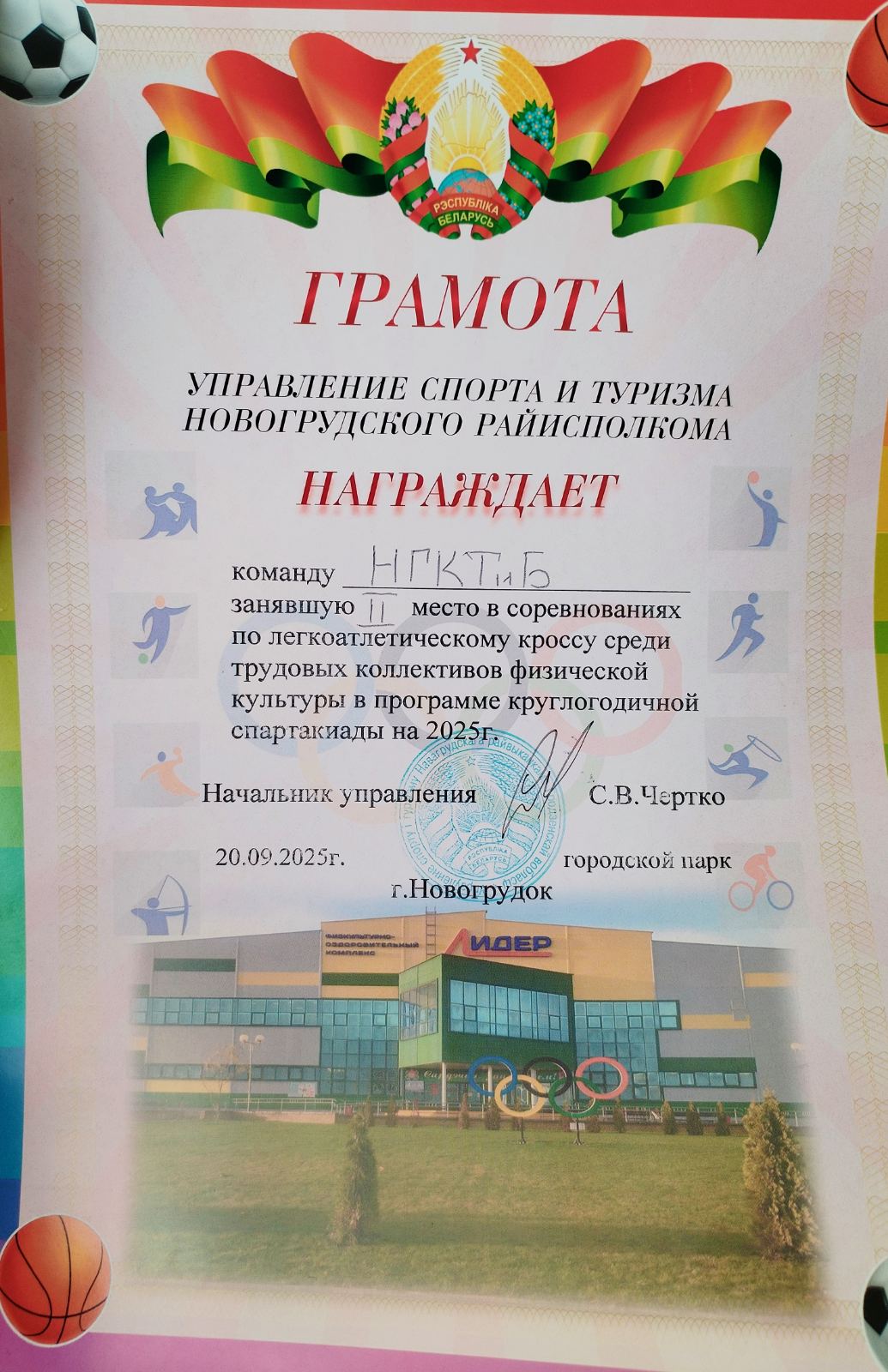 20 сентября 2025 года в парке г. Новогрудка в рамках круглогодичной спартакиады среди работников трудовых коллективов состоялся легкоатлетический кросс.