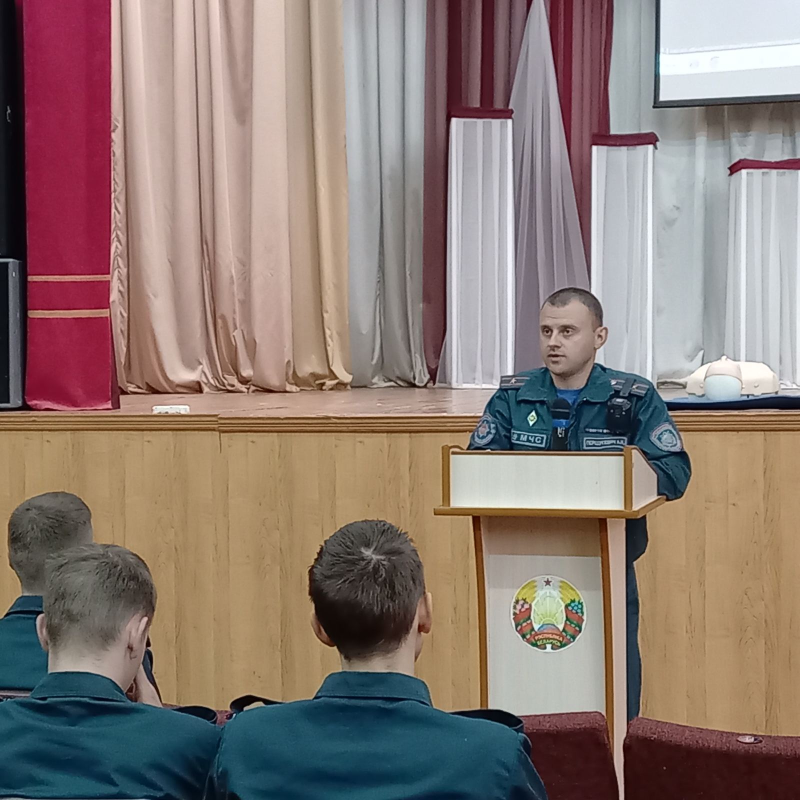 Заместитель начальника отдела Новогрудского РОЧС Андрей Иванович Першукевич провёл тематическую беседу, в ходе которой напомнил номера вызова экстренных служб, правила чтения знаков безопасности, а также продемонстрировал порядок пользования огнетушителем. Он привёл статистику пожаров, рассказал о вреде курения, пожарной безопасности при использовании кухонных плит в общежитиях, уделил внимание работе пожарных извещателей и систем оповещения, установленным в учебных корпусах и общежитиях. Также были подробно рассмотрены правила эвакуации из зданий.