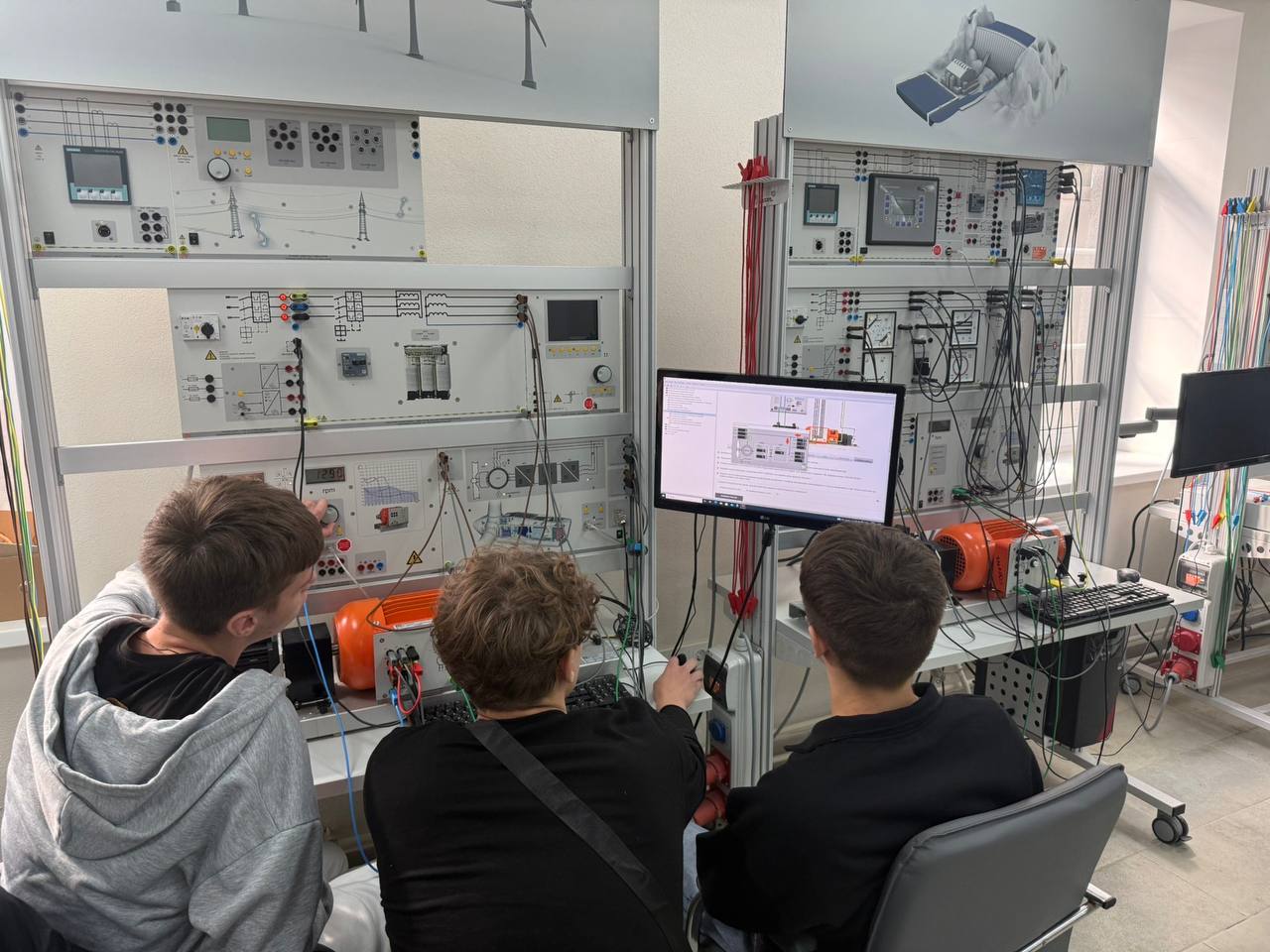 Посещение центра было направлено на изучение возобновляемых источников энергии. С учащимися была проведена экскурсия по территории Ресурсного центра, а именно в учебные лаборатории: "Умный дом", "Возобновляемая энергетика, энергетические системы и сети", "Жилищно-коммунального хозяйства с применением возобновляемых источников энергии", "Биоэнергетики". Будущие специалисты поработали на учебных стендах: "Производство электроэнергии","Фотовольтаика", "Продвинутая фотовольтаика", "Ветрогенераторные установки", "Малые ветрогенераторные установки", "Управление электрической энергией". Также для учащихся была организована экскурсия в лабораторию "Умный дом", учебные стенды которой дают возможность учёбы на ПК и тренировки на оригинальном оборудовании.