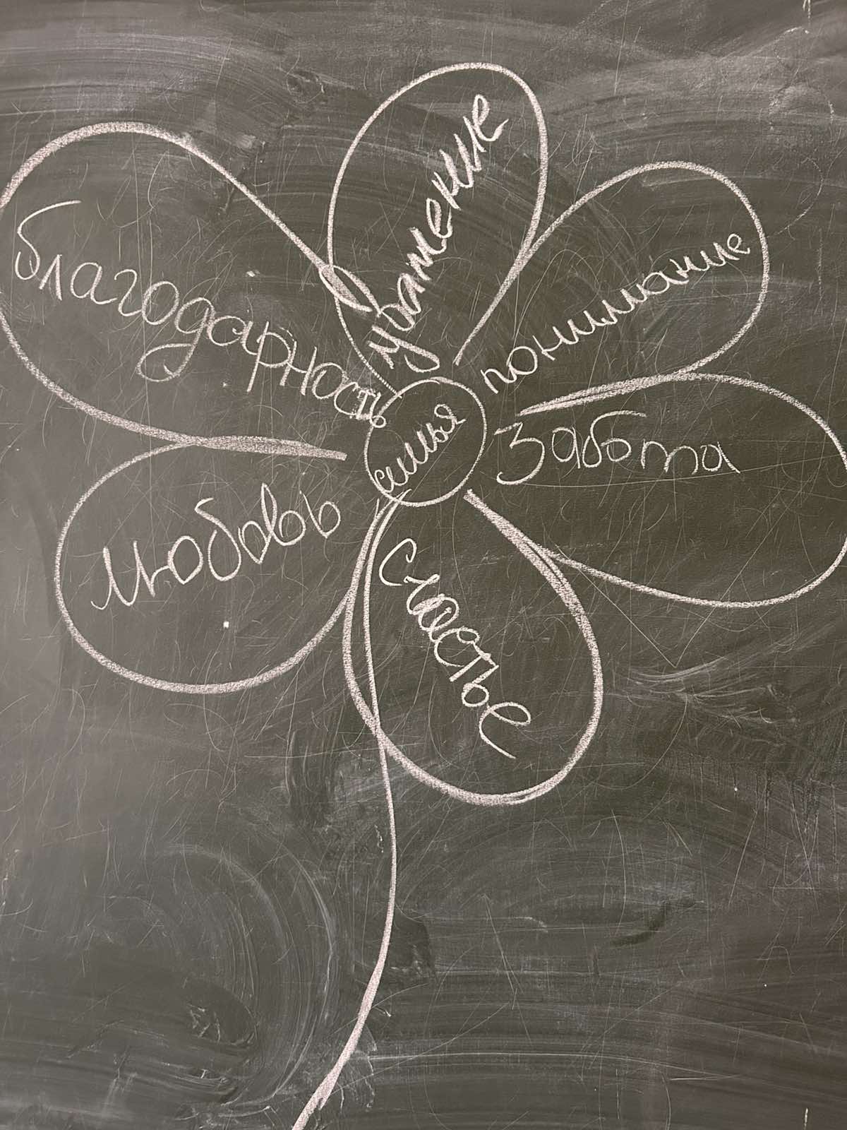 В 12о группе прошел информационный час «В моей семье говорят красиво». Семья - это маленький островок уюта в огромном мире, это самые близкие и родные люди. Учащиеся написали мини-сочинения с выражением благодарности своим семьям, а на доске записали слова, которые у них ассоциируются со словом «Семья».
