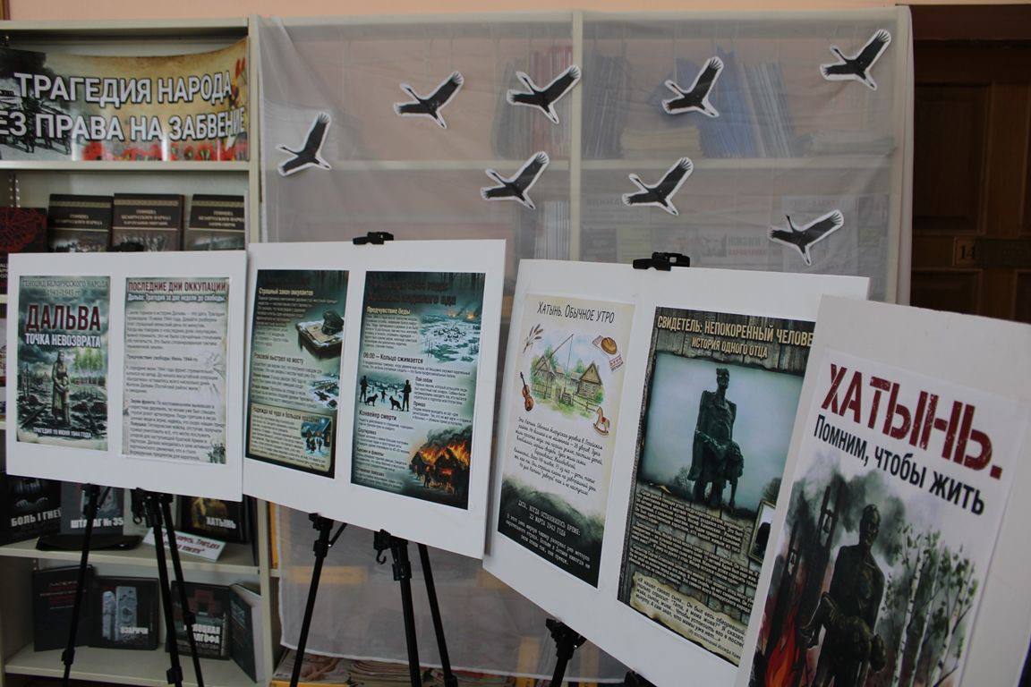 18 сакавіка ў Навагрудскай раённай бібліятэцы прайшоў літаратурны набат "Галасы спаленых вёсак", прысвечаны Дню памяці ахвяр Хатынскай трагедыі. Разам з бібліятэкарам навучэнцы Навагрудскага дзяржаўнага каледжа тэхналогій і бяспекі ўзгадалі трагічныя абставіны гібелі жыхароў вёсак Хатынь, Драмлёва, Дальва, Ала, Шунеўка, Шаўлічы. З дапамогай электроннай базы дадзеных “Беларускія вёскі, спаленыя ў гады Вялікай Айчыннай вайны” была здзейснена відэа-экскурсія па мемарыяльных комплексах. Выстава-экспазіцыя “Агонь вайны: вёскі, што не вярнуліся” прадставіла гісторыка-дакументальную і мастацкую літаратуру. У ліку адметных выданняў з фонду бібліятэкі – кніга “Сёстры Хатыни. Гродненщина” – унікальнае выданне, створанае на аснове журналісцкага праекта газеты “Гродзенская праўда” пры падтрымцы пракуратуры Гродзенскай вобласці.