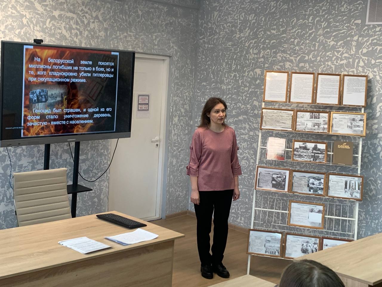 С целью формирования исторической памяти обучающихся на основе осмысления ими фактов геноцида белорусского народа в годы Великой Отечественной войны, формирования отрицательного отношения к насилию, негативного отношения к войне в колледже прошел Единый урок, посвященный трагическим событиям в д.Хатынь "Хатынь: боль и память..."