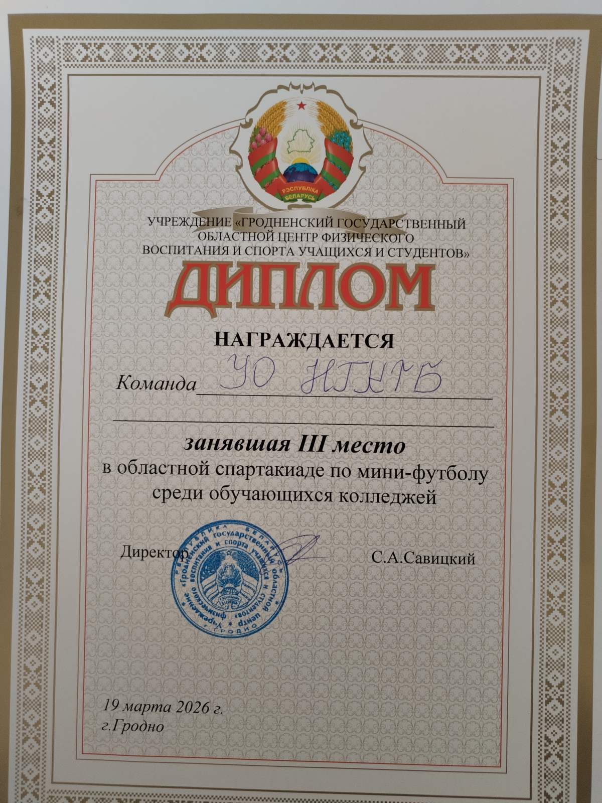 На базе УО "Гродненский государственный политехнический колледж" прошли областные финальные соревнования по мини-футболу среди обучающихся колледжей Гродненской области.