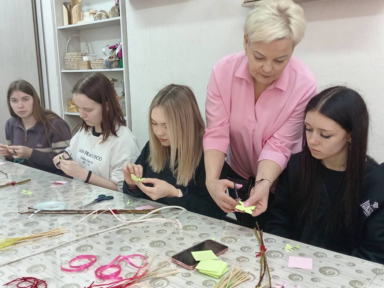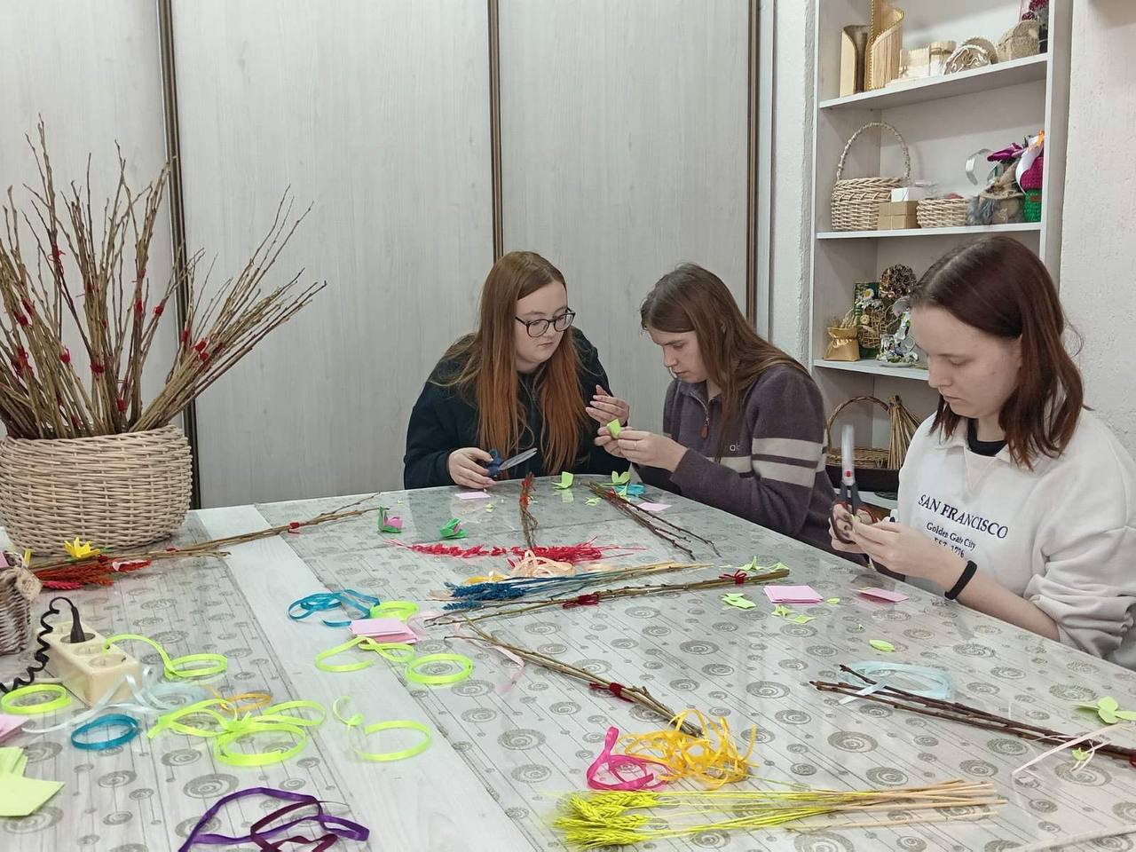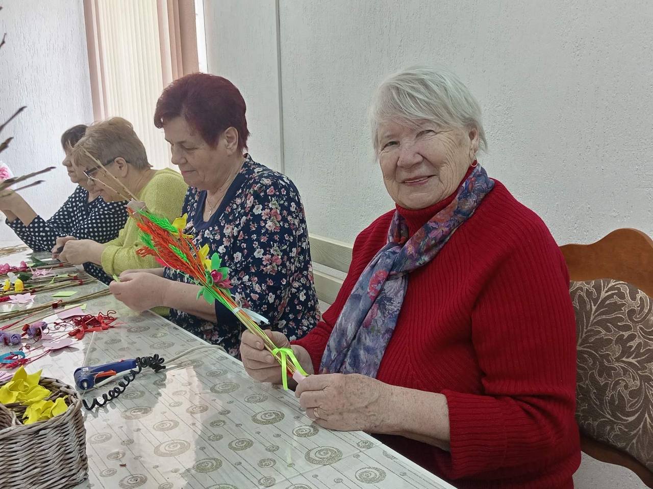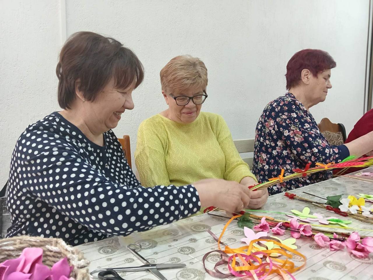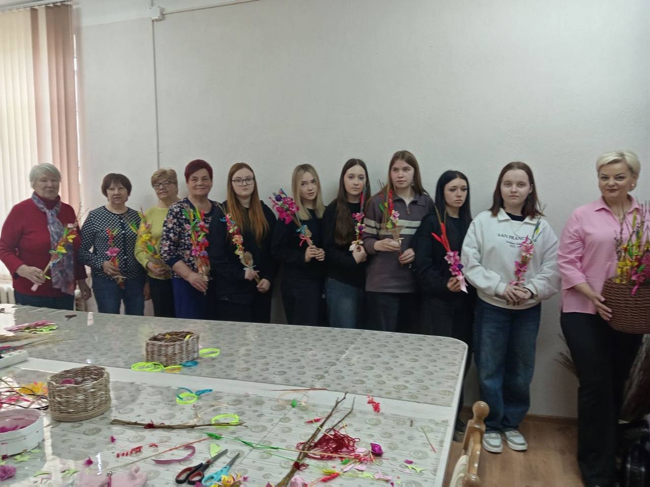 Участники проектной команды «Семейный ковчег» приняли участие в мастер-классе по изготовлению вербных украшений в ТЦОН. С самого начала атмосфера была очень теплой и дружелюбной. Мудрые наставники, посетители центра ,за время встречи поделились своим жизненным опытом празднования вербного воскресения, интересными фактами и семейными историями праздника. Каждый участник мастер - класса смог создать уникальное украшение, используя различные элементы: веточки, цветы, ленты и многое другое. Наставники помогали советами и подсказывали правильное решение.