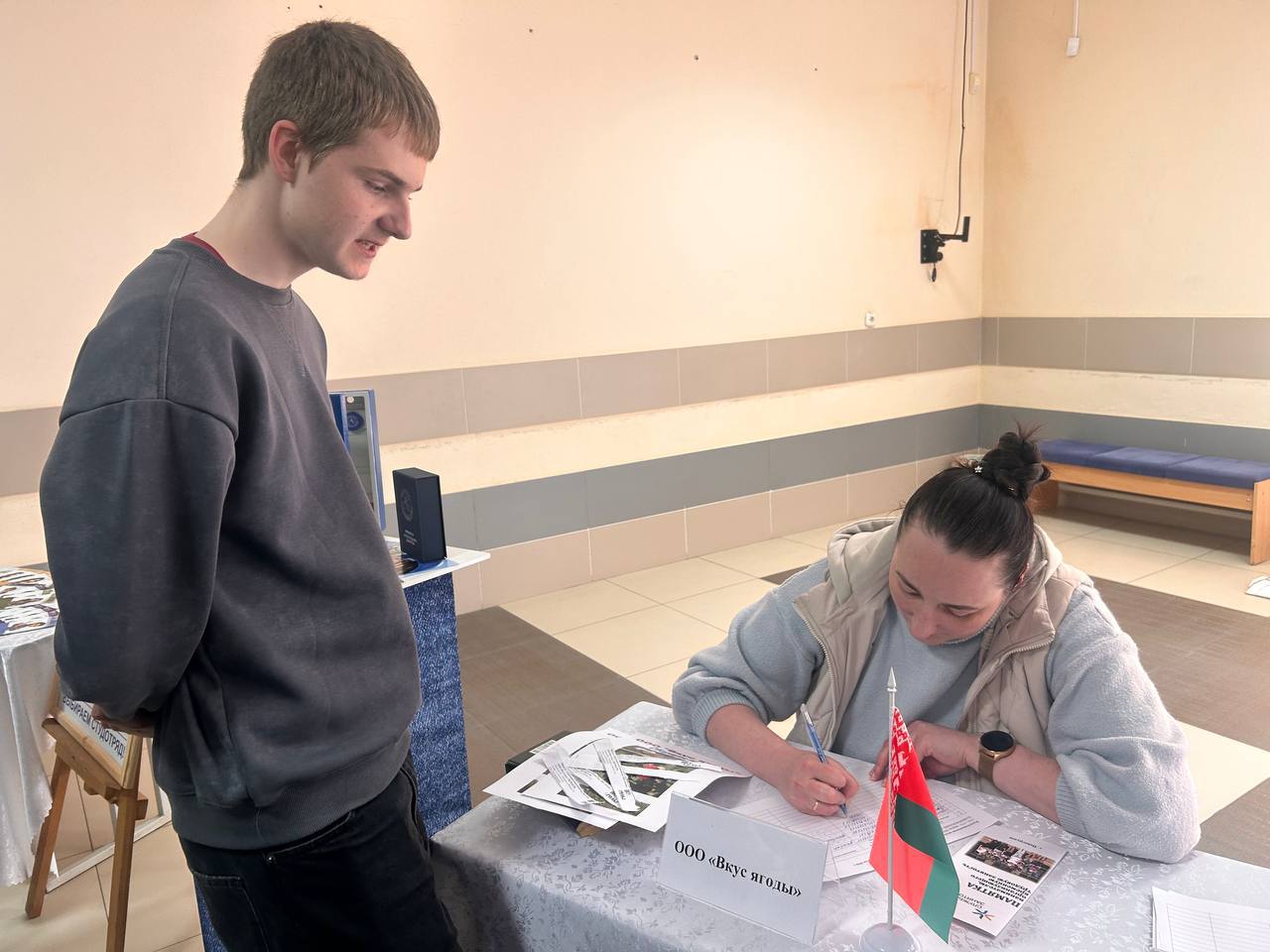 Обучающиеся колледжа посетили молодежную ярмарку вакансий – масштабное мероприятие, направленное на содействие в трудоустройстве юношам и девушкам в свободное от учебы время и помощь выпускникам учебных заведений. Площадкой для прямого диалога между соискателями и нанимателями выступил Новогрудский районный центр культуры и народного творчества. Около 150 вакансий заявили для участников ярмарки организации и предприятия района, в том числе Новогрудское РУП ЖКХ, ГУ «Новогрудский социальный пансионат «Аксамит», ОАО «Большая Крыница», филиал «Новогрудские Дары» ОАО «Лидский молочно-консервный комбинат», ОАО «Принеманский», СП «Леор Пластик» ООО, центральная районная больница, ОАО «Вкус ягоды» и другие.