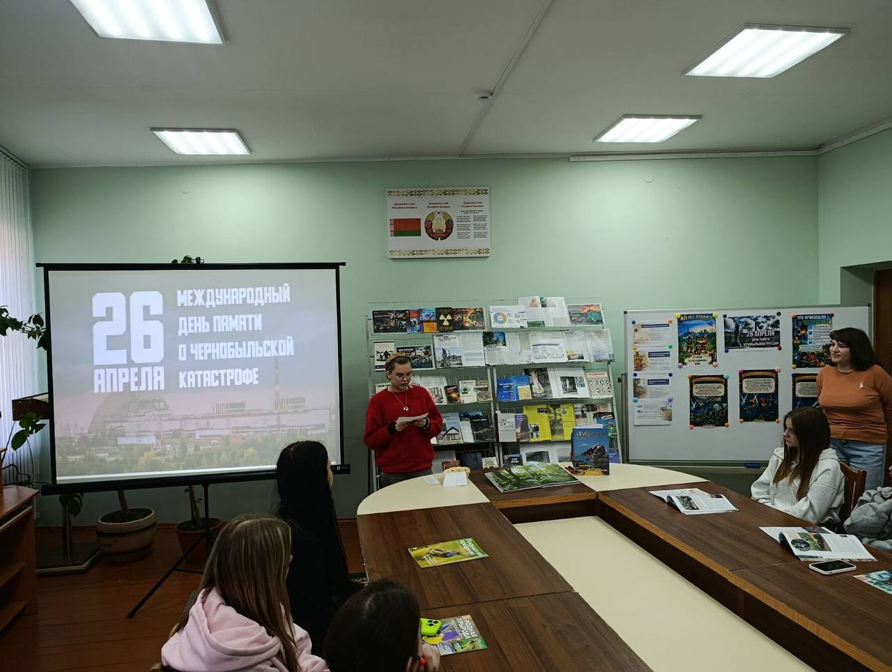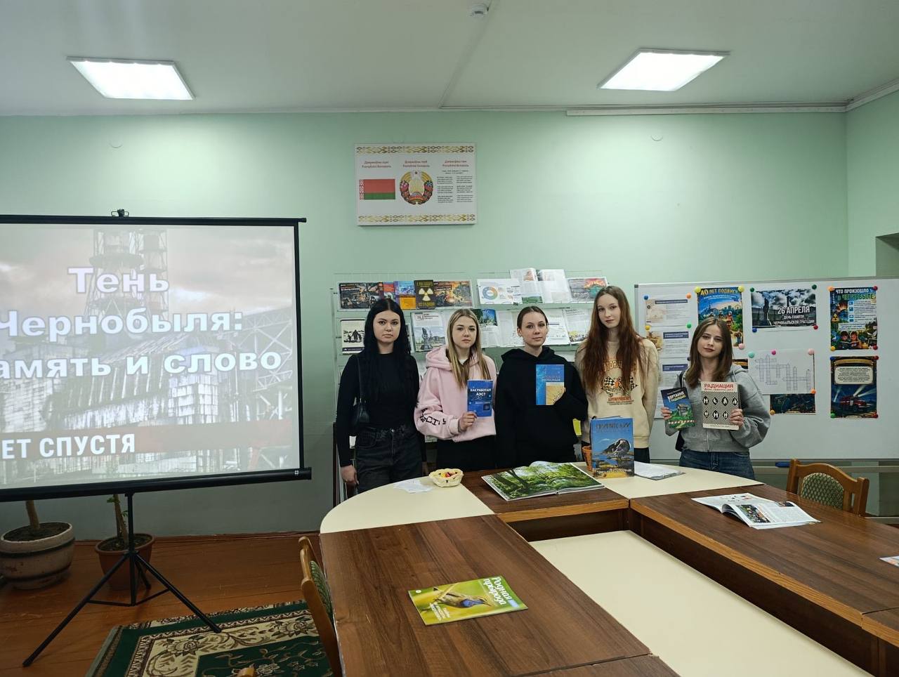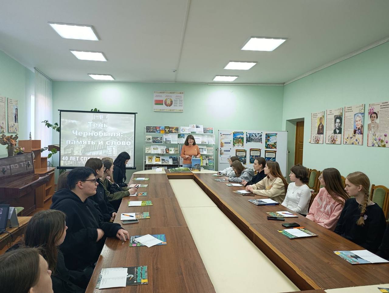 Учащиеся 22о группы посетили районную библиотеку, где прошло тематическое мероприятие «Тень Чернобыля: память и слово. 40 лет спустя». Участники мероприятия посмотрели документальное видео о катастрофе на Чернобыльской АЭС и её долгосрочных последствиях, после чего состоялось активное обсуждение: учащиеся делились эмоциями и задавали интересующие их вопросы, изучили выставку книг — как художественных, так и тематических научных изданий. Кроме того, в ходе мероприятия разгадывали тематический кроссворд и отвечали на вопросы викторины по истории аварии. Встреча помогла будущим специалистам глубже осознать масштаб трагедии и важность сохранения памяти о ней.